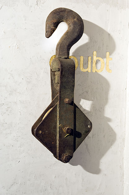 PROPHET (gancio e puleggia in ghisa, foglia d'oro 22k, pittura acrilica) 60 x 20 x 90 cm