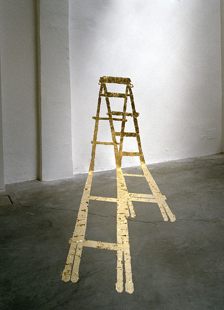 Normalmente si pensa all'ombra come ad assenza di luce. Qui la sensazione viene ribaltata. Usando l'oro per tracciare l'ombra di un oggetto, il segno diventa positivo. L'oro splende di luce e viene verso di noi. Visto dalla stessa traiettoria dell'illuminazione che ha creato l'ombra, il disegno sembra ricomporsi in oggetto, perdendo la sua aderenza a pavimento e muro. L'ombra assume il suo significato poetico di "doppio" della realtà: senza corpo, ma segno di qualcosa di essenziale, forse metafisico, del suo soggetto.