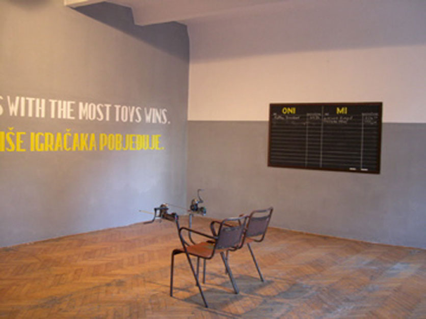 L'unità di misura è stata utilizzata quale strumento di amministrazione, quindi controllo, quindi dominio da tutti gli imperi di ogni tempo. In questo gioco i partecipanti gareggiano per estendere il loro metro avvolgibile marchiato "British Imperial Units: pollici" il più lontano possibile prima che collassi sotto il proprio peso: destino di tutti gli imperi. Poi segnano sulla lavagna la loro estensione in una misura che non capiscono. Al vincitore una maglietta con la scritta che sta sul muro: "VINCE CHI MUORE CON PIU' GIOCATTOLI"